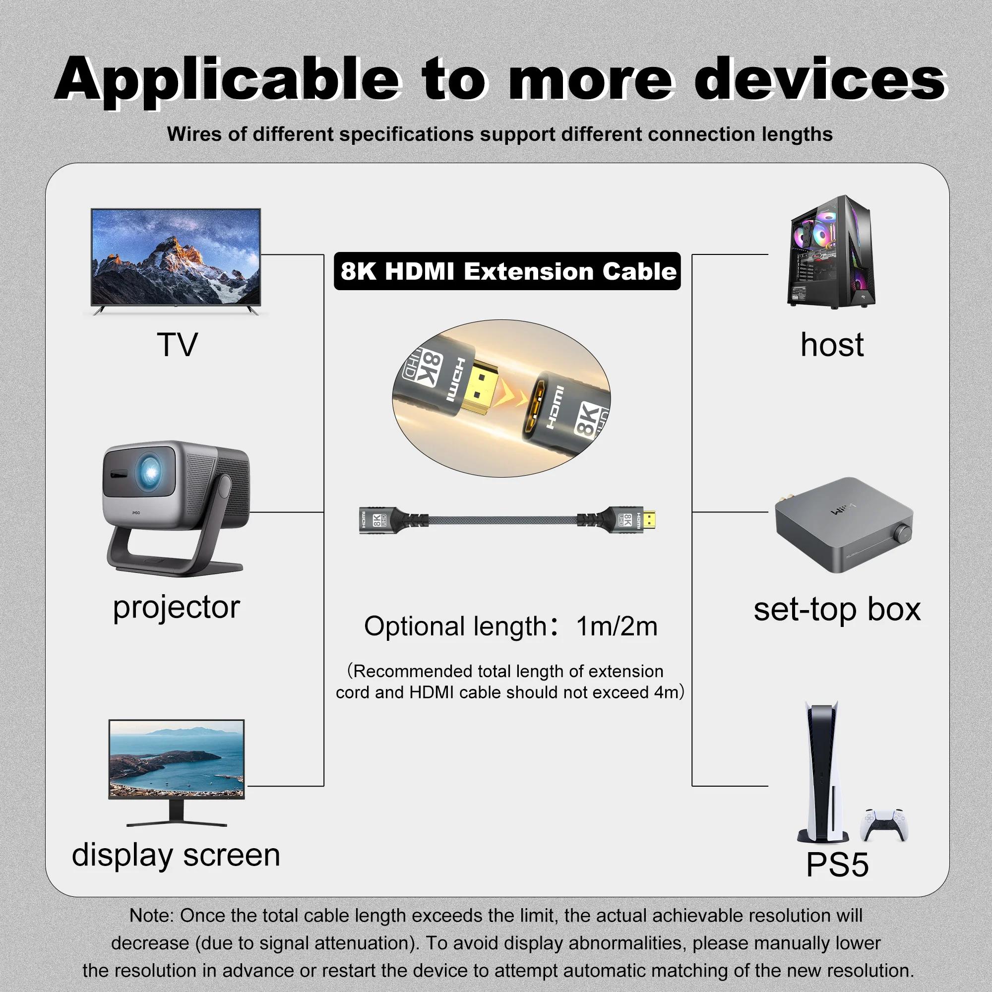 Enjoy high-quality audio with the HDMI 2.2 cable's eARC feature, providing improved sound transmission for an immersive audio experience.
